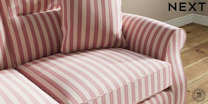 7.3.1 Buy Ashford Highback 2 Seater Sofa Bold Chenille Stripe Dark Pink Modern Turned Metal Cap - Mid from the Next UK online shop