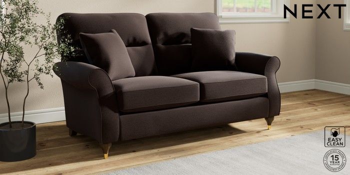 6.12.1 Buy Ashford Highback 2 Seater Sofa Fine Chenille Easy Clean Chocolate Brown Modern Turned Metal Cap - Mid from the Next UK online shop Click here to use our accessible website