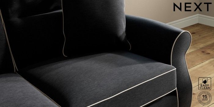 7.3.1 Buy Ashford Highback 2 Seater Sofa Fine Chenille with Contrast Black and Oyster Low Turned - Light from the Next UK online shop Click here to use our accessible website