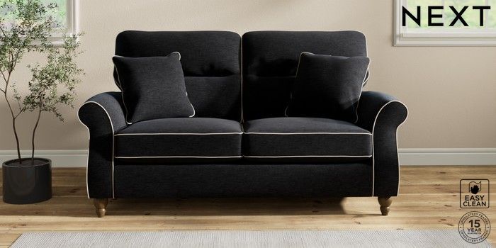 7.3.1 Buy Ashford Highback 2 Seater Sofa Fine Chenille with Contrast Black and Oyster Low Turned - Mid from the Next UK online shop Click here to use our accessible website