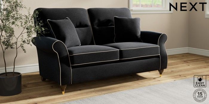 7.3.1 Buy Ashford Highback 2 Seater Sofa Fine Chenille with Contrast Black and Oyster Modern Turned Metal Cap - Mid from the Next UK online shop Click here to use our accessible website