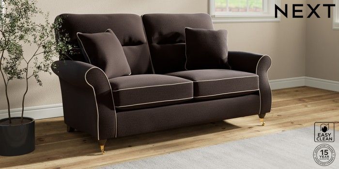 7.3.1 Buy Ashford Highback 2 Seater Sofa Fine Chenille with Contrast Chocolate Brown and Oyster Castor - Mid from the Next UK online shop Click here to use our accessible website