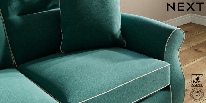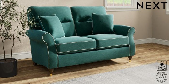 7.3.1 Buy Ashford Highback 2 Seater Sofa Fine Chenille with Contrast Dark Juniper Green and Oyster Modern Turned Metal Cap - Mid from the Next UK online shop Click here to use our accessible website