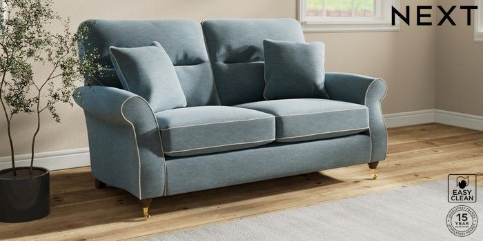7.3.1 Buy Ashford Highback 2 Seater Sofa Fine Chenille with Contrast Mid Blue and Oyster Castor - Mid from the Next UK online shop Click here to use our accessible website