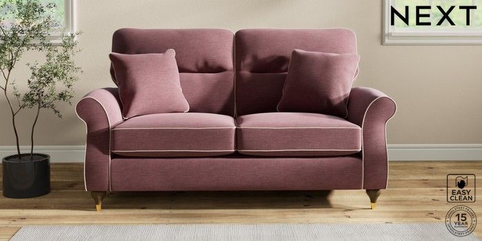 7.3.1 Buy Ashford Highback 2 Seater Sofa Fine Chenille with Contrast Mid Mulberry Purple and Oyster Modern Turned Metal Cap - Mid from the Next UK online shop Click here to use our accessible website