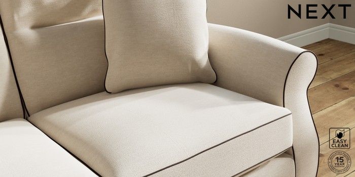 7.3.1 Buy Ashford Highback 2 Seater Sofa Fine Chenille with Contrast Oyster and Chocolate Brown Castor - Light from the Next UK online shop Click here to use our accessible website