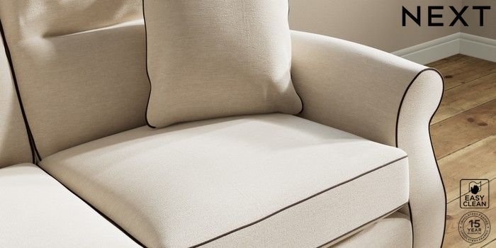 7.3.1 Buy Ashford Highback 2 Seater Sofa Fine Chenille with Contrast Oyster and Chocolate Brown Modern Turned Metal Cap - Mid from the Next UK online shop Click here to use our accessible website