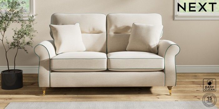 7.3.1 Buy Ashford Highback 2 Seater Sofa Fine Chenille with Contrast Oyster and Dark Juniper Green Castor - Light from the Next UK online shop Click here to use our accessible website