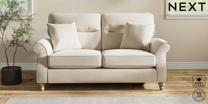 7.3.1 Buy Ashford Highback 2 Seater Sofa Fine Chenille with Contrast Oyster and Mid Blue Low Turned - Light from the Next UK online shop Click here to use our accessible website
