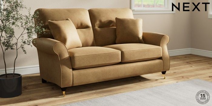 6.12.1 Buy Ashford Highback 2 Seater Sofa Luxe Chenille Honey Yellow Castor - Dark from the Next UK online shop Click here to use our accessible website