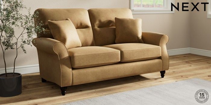 6.12.1 Buy Ashford Highback 2 Seater Sofa Luxe Chenille Honey Yellow Low Turned - Dark from the Next UK online shop Click here to use our accessible website