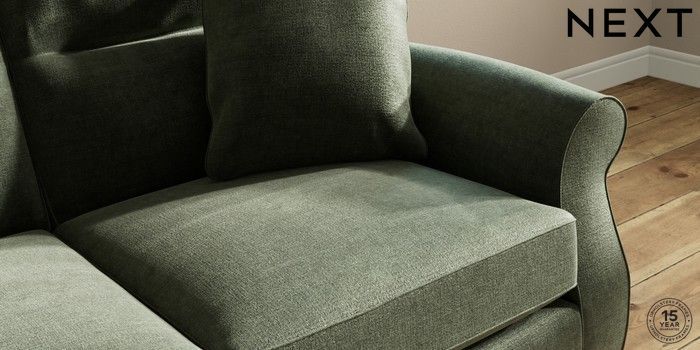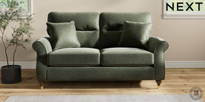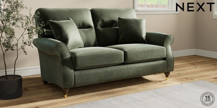 6.12.1 Buy Ashford Highback 2 Seater Sofa Luxe Chenille Mid Green Modern Turned Metal Cap - Mid from the Next UK online shop Click here to use our accessible website