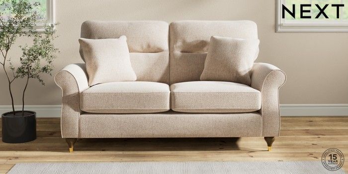 7.2.6 Buy Ashford Highback 2 Seater Sofa Multi Weave Mid Natural Modern Turned Metal Cap - Mid from the Next UK online shop Click here to use our accessible website