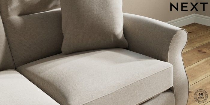 6.12.1 Buy Ashford Highback 2 Seater Sofa Ripple Chenille Light Natural Modern Turned Metal Cap - Mid from the Next UK online shop Click here to use our accessible website