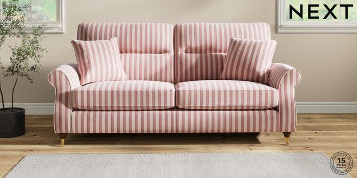 7.2.6 Buy Ashford Highback 3 Seater Sofa Bold Chenille Stripe Dark Pink Castor - Mid from the Next UK online shop Click here to use our accessible website