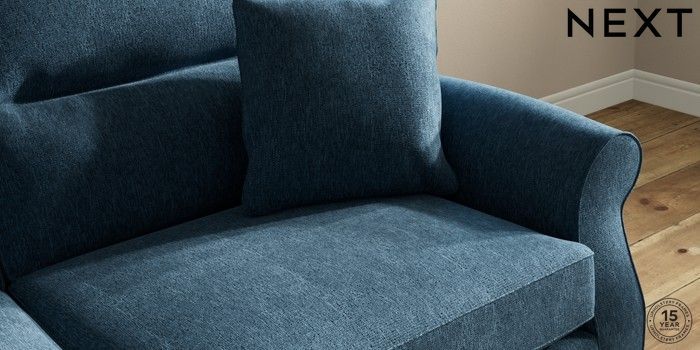 6.12.1 Buy Ashford Highback 3 Seater Sofa Cotswold Chenille Dark Blue Modern Turned Metal Cap - Mid from the Next UK online shop Click here to use our accessible website