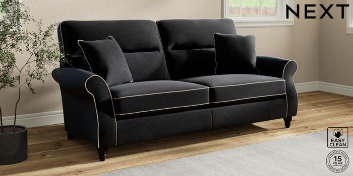 7.3.1 Buy Ashford Highback 3 Seater Sofa Fine Chenille with Contrast Black and Oyster Low Turned - Dark from the Next UK online shop Click here to use our accessible website