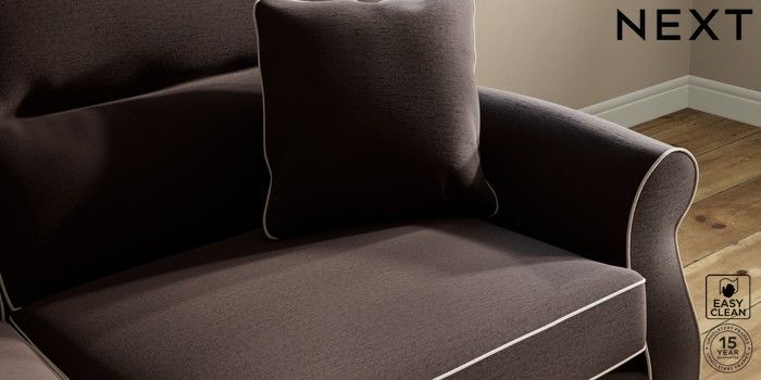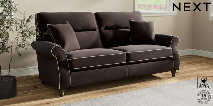 7.3.1 Buy Ashford Highback 3 Seater Sofa Fine Chenille with Contrast Chocolate Brown and Oyster Low Turned - Mid from the Next UK online shop Click here to use our accessible website