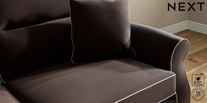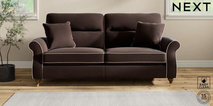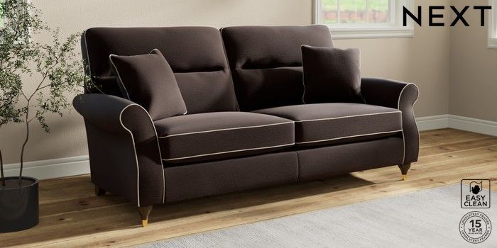 7.3.1 Buy Ashford Highback 3 Seater Sofa Fine Chenille with Contrast Chocolate Brown and Oyster Modern Turned Metal Cap - Mid from the Next UK online shop Click here to use our accessible website