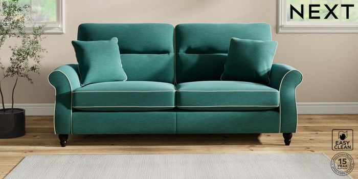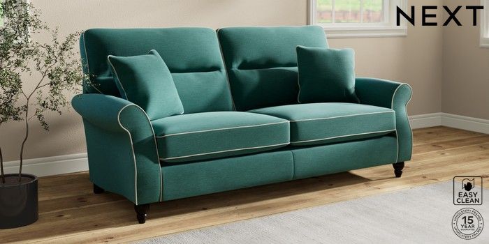 7.3.1 Buy Ashford Highback 3 Seater Sofa Fine Chenille with Contrast Dark Juniper Green and Oyster Low Turned - Dark from the Next UK online shop Click here to use our accessible website