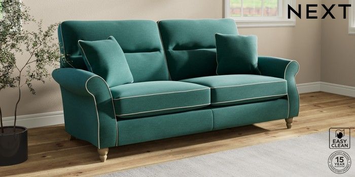 7.3.1 Buy Ashford Highback 3 Seater Sofa Fine Chenille with Contrast Dark Juniper Green and Oyster Low Turned - Light from the Next UK online shop Click here to use our accessible website