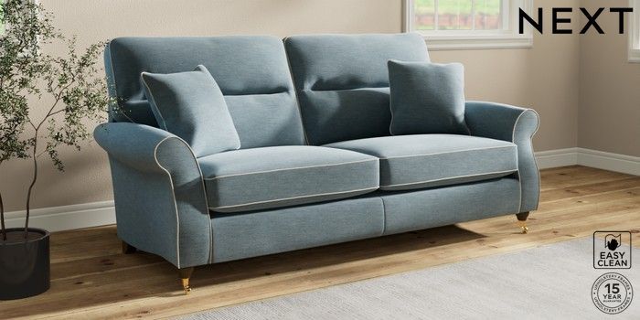 7.3.1 Buy Ashford Highback 3 Seater Sofa Fine Chenille with Contrast Mid Blue and Oyster Castor - Mid from the Next UK online shop Click here to use our accessible website