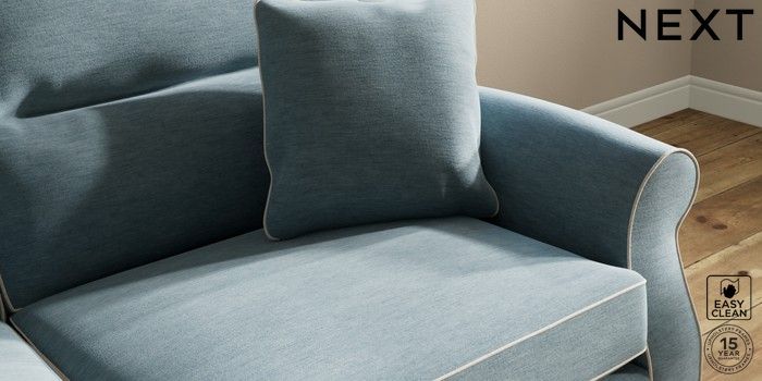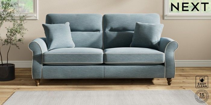7.3.1 Buy Ashford Highback 3 Seater Sofa Fine Chenille with Contrast Mid Blue and Oyster Low Turned - Mid from the Next UK online shop Click here to use our accessible website