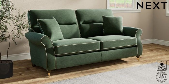 7.3.1 Buy Ashford Highback 3 Seater Sofa Fine Chenille with Contrast Mid Khaki Green and Oyster Castor - Mid from the Next UK online shop Click here to use our accessible website