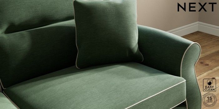 7.3.1 Buy Ashford Highback 3 Seater Sofa Fine Chenille with Contrast Mid Khaki Green and Oyster Low Turned - Dark from the Next UK online shop Click here to use our accessible website