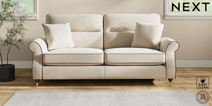 7.3.1 Buy Ashford Highback 3 Seater Sofa Fine Chenille with Contrast Oyster and Black Castor - Mid from the Next UK online shop Click here to use our accessible website