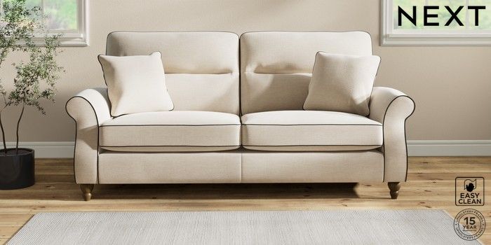 7.3.1 Buy Ashford Highback 3 Seater Sofa Fine Chenille with Contrast Oyster and Black Low Turned - Mid from the Next UK online shop Click here to use our accessible website