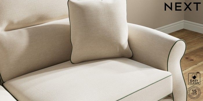 7.3.1 Buy Ashford Highback 3 Seater Sofa Fine Chenille with Contrast Oyster and Mid Khaki Green Low Turned - Light from the Next UK online shop Click here to use our accessible website