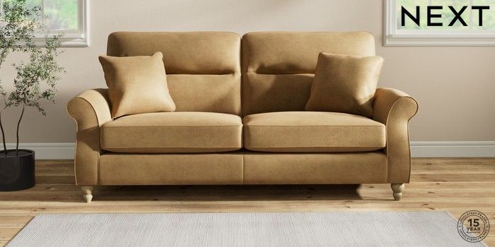 6.12.1 Buy Ashford Highback 3 Seater Sofa Luxe Chenille Honey Yellow Low Turned - Light from the Next UK online shop Click here to use our accessible website
