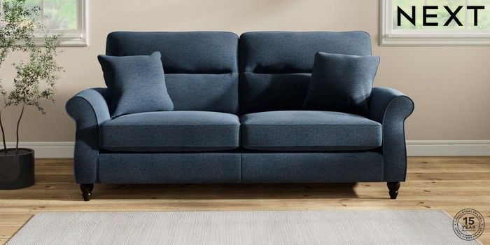 6.12.1 Buy Ashford Highback 3 Seater Sofa Ripple Chenille Dark Blue Low Turned - Dark from the Next UK online shop Click here to use our accessible website