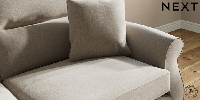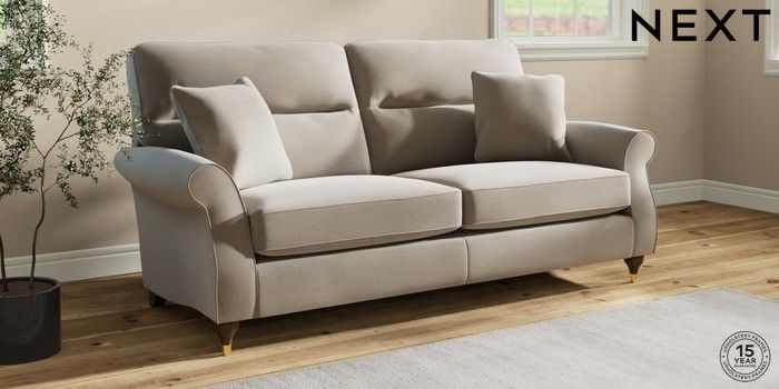 6.12.1 Buy Ashford Highback 3 Seater Sofa Ripple Chenille Light Natural Modern Turned Metal Cap - Mid from the Next UK online shop Click here to use our accessible website