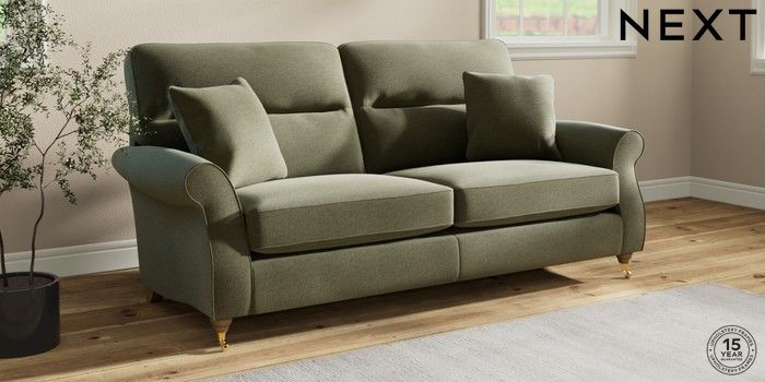 6.12.1 Buy Ashford Highback 3 Seater Sofa Ripple Chenille Mid Moss Green Castor - Light from the Next UK online shop Click here to use our accessible website
