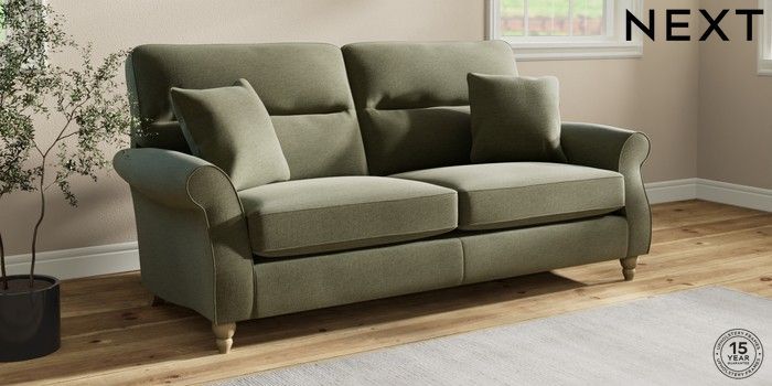 6.12.1 Buy Ashford Highback 3 Seater Sofa Ripple Chenille Mid Moss Green Low Turned - Light from the Next UK online shop Click here to use our accessible website