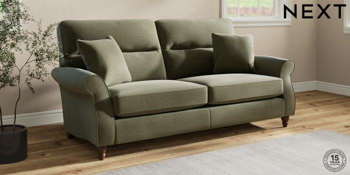6.12.1 Buy Ashford Highback 3 Seater Sofa Ripple Chenille Mid Moss Green Low Turned - Mid from the Next UK online shop Click here to use our accessible website