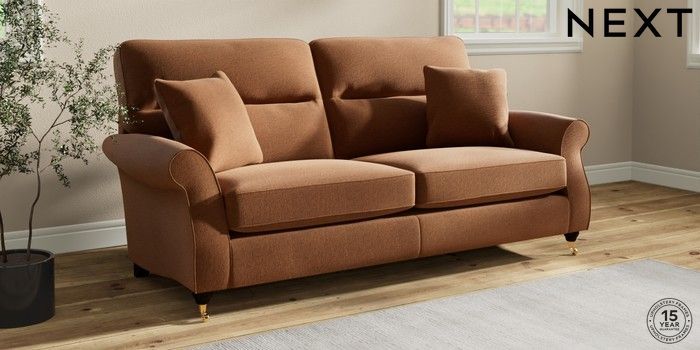 6.12.1 Buy Ashford Highback 3 Seater Sofa Ripple Chenille Mid Rust Brown Castor - Dark from the Next UK online shop Click here to use our accessible website
