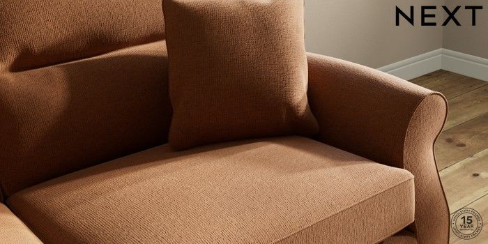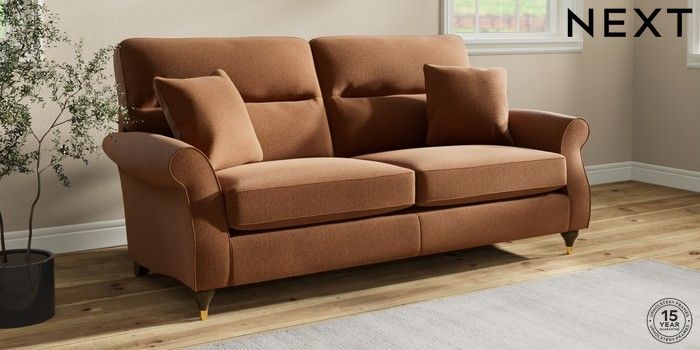 6.12.1 Buy Ashford Highback 3 Seater Sofa Ripple Chenille Mid Rust Brown Modern Turned Metal Cap - Mid from the Next UK online shop Click here to use our accessible website