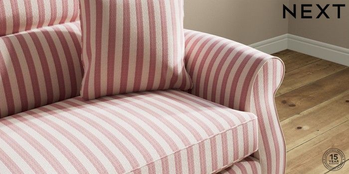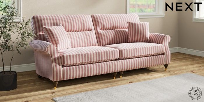 7.3.1 Buy Ashford Highback 4 Seater Sofa Bold Chenille Stripe Dark Pink Modern Turned Metal Cap - Mid from the Next UK online shop