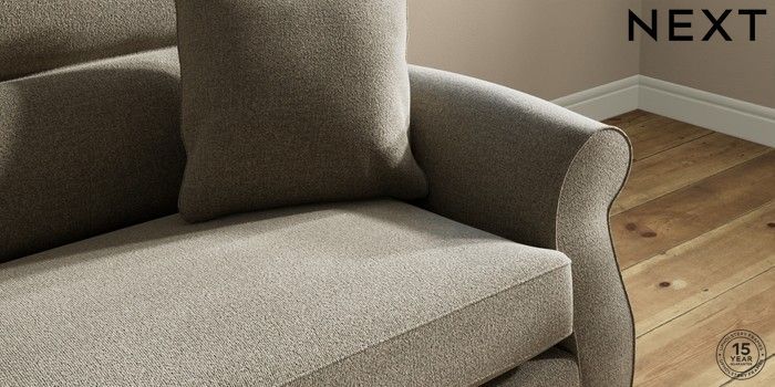 6.12.1 Buy Ashford Highback 4 Seater Sofa Chunky Marl Light Olive Green Modern Turned Metal Cap - Mid from the Next UK online shop Click here to use our accessible website