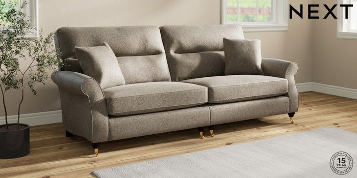 6.12.1 Buy Ashford Highback 4 Seater Sofa Cotswold Chenille Mid Mink Brown Castor - Dark from the Next UK online shop Click here to use our accessible website
