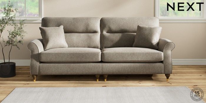 6.12.1 Buy Ashford Highback 4 Seater Sofa Cotswold Chenille Mid Mink Brown Modern Turned Metal Cap - Mid from the Next UK online shop Click here to use our accessible website