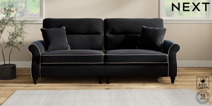 7.3.1 Buy Ashford Highback 4 Seater Sofa Fine Chenille with Contrast Black and Oyster Low Turned - Dark from the Next UK online shop Click here to use our accessible website