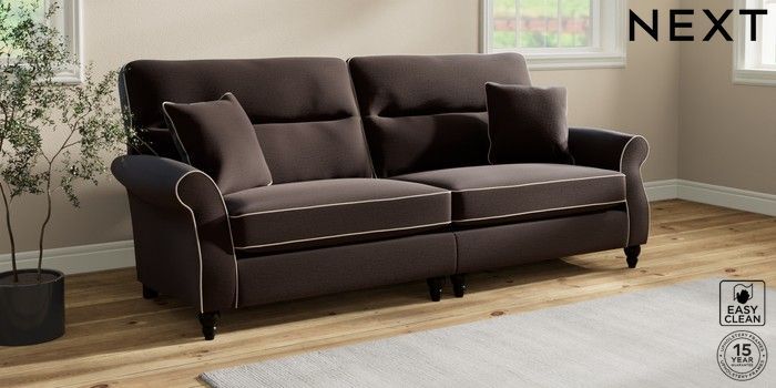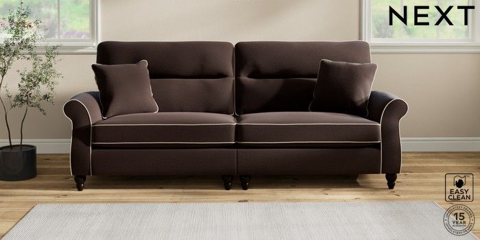 7.3.1 Buy Ashford Highback 4 Seater Sofa Fine Chenille with Contrast Chocolate Brown and Oyster Low Turned - Dark from the Next UK online shop Click here to use our accessible website