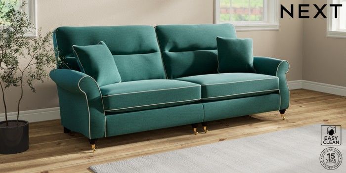 7.3.1 Buy Ashford Highback 4 Seater Sofa Fine Chenille with Contrast Dark Juniper Green and Oyster Castor - Dark from the Next UK online shop Click here to use our accessible website