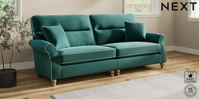 7.3.1 Buy Ashford Highback 4 Seater Sofa Fine Chenille with Contrast Dark Juniper Green and Oyster Low Turned - Light from the Next UK online shop Click here to use our accessible website