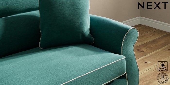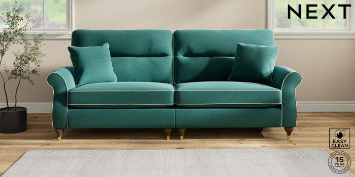 7.3.1 Buy Ashford Highback 4 Seater Sofa Fine Chenille with Contrast Dark Juniper Green and Oyster Modern Turned Metal Cap - Mid from the Next UK online shop Click here to use our accessible website