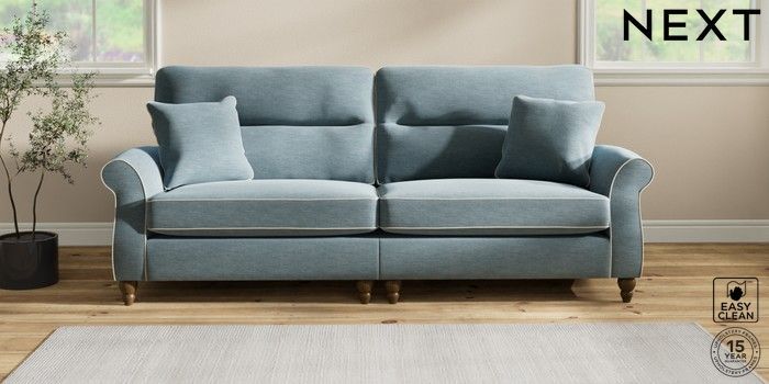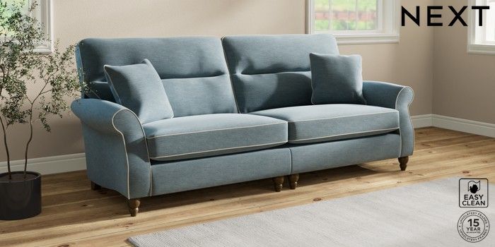 7.3.1 Buy Ashford Highback 4 Seater Sofa Fine Chenille with Contrast Mid Blue and Oyster Low Turned - Mid from the Next UK online shop Click here to use our accessible website